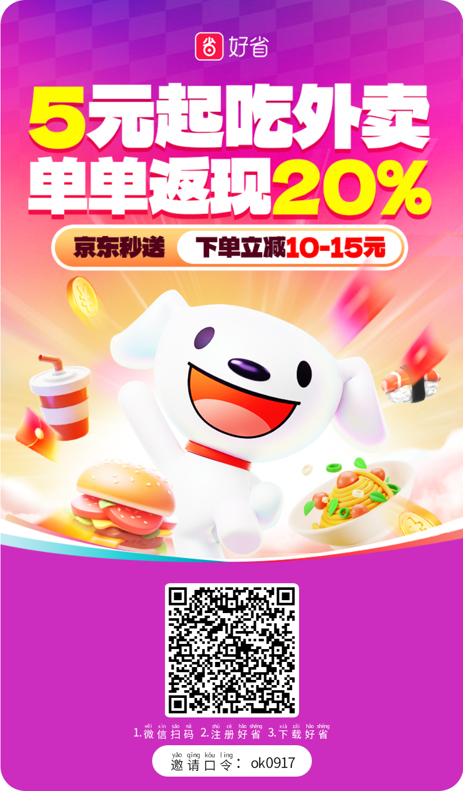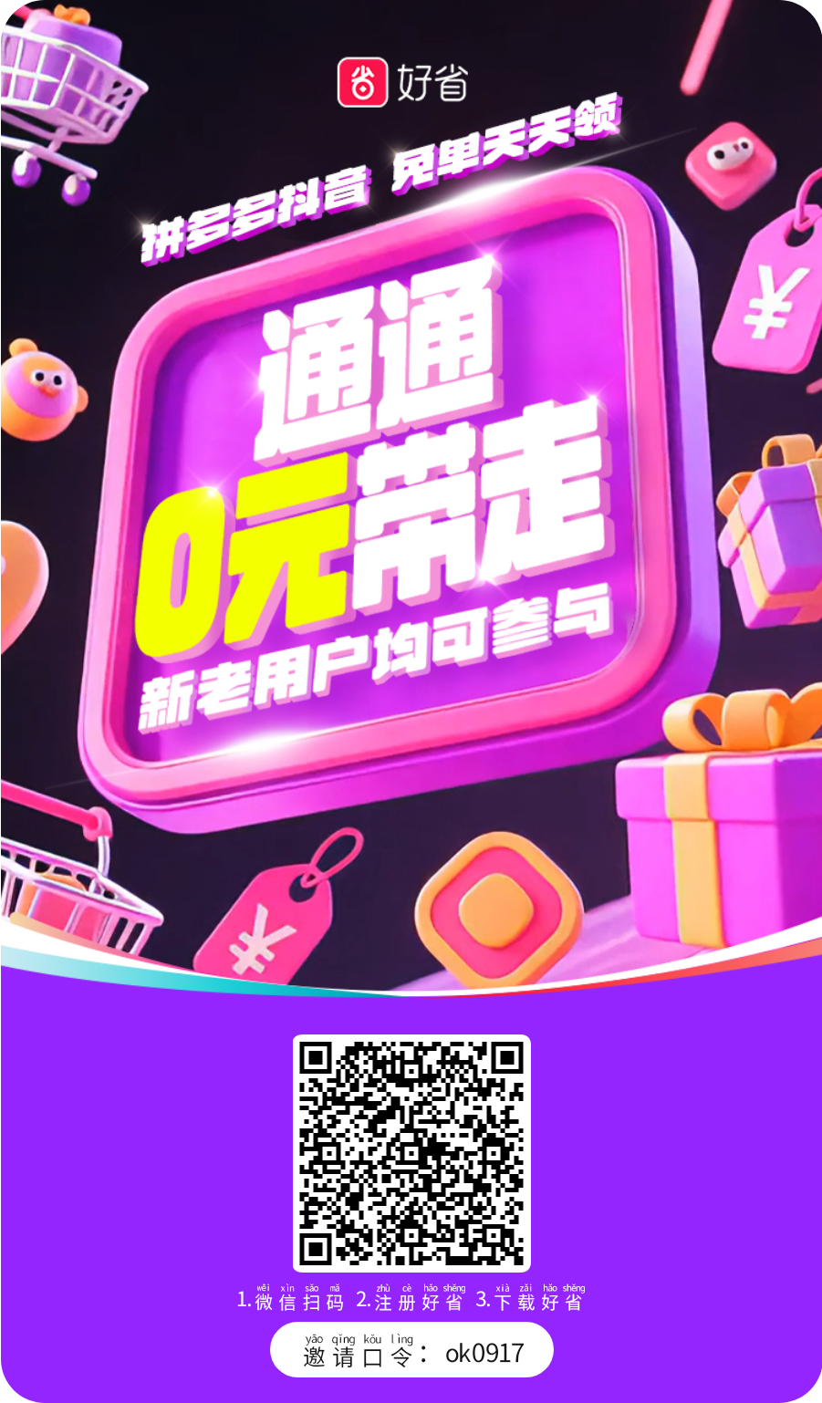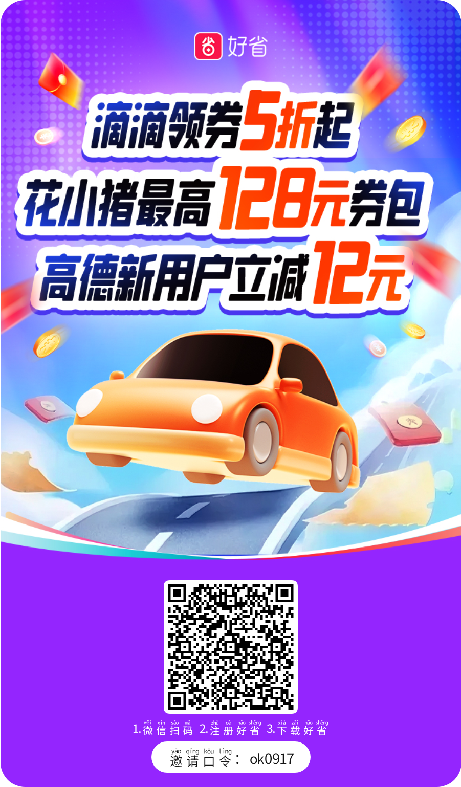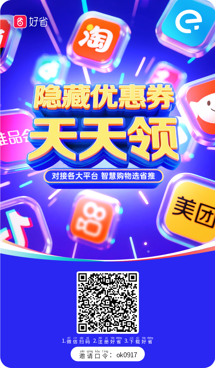 • 应用商店搜索"好省"下载,使用邀请码: ok0917 注册